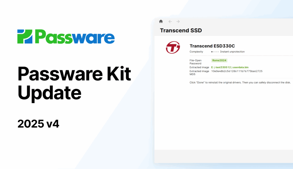 As the number of hardware manufacturers increases, forensic professionals must ensure their decryption solution remains current and supports an expanding range of disk models. Passware Kit 2025 v4 introduces password recovery and unlocking for Transcend Portable 2022–2025 SSDs. It now also supports Enpass, expanding its decryption capabilities to even more password managers.