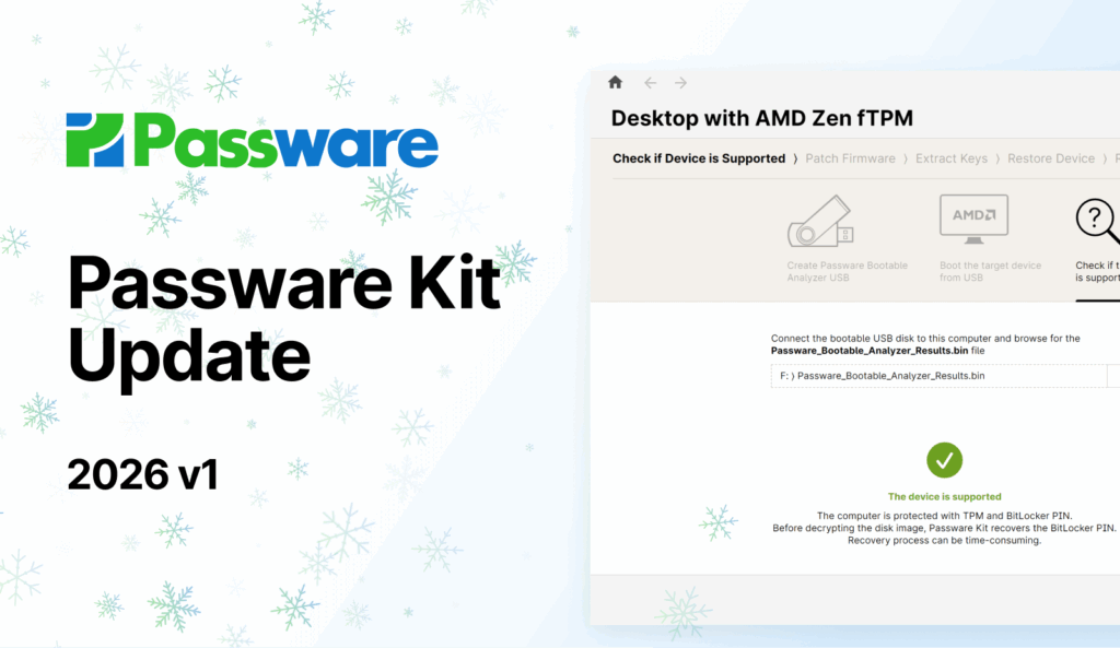 Passware introduces a decryption solution for AMD Zen/Zen+ desktop computers protected with BitLocker and firmware TPM (fTPM), even when a PIN is set. The tool recovers a BitLocker VMK, allowing forensic professionals to decrypt the disk within minutes.